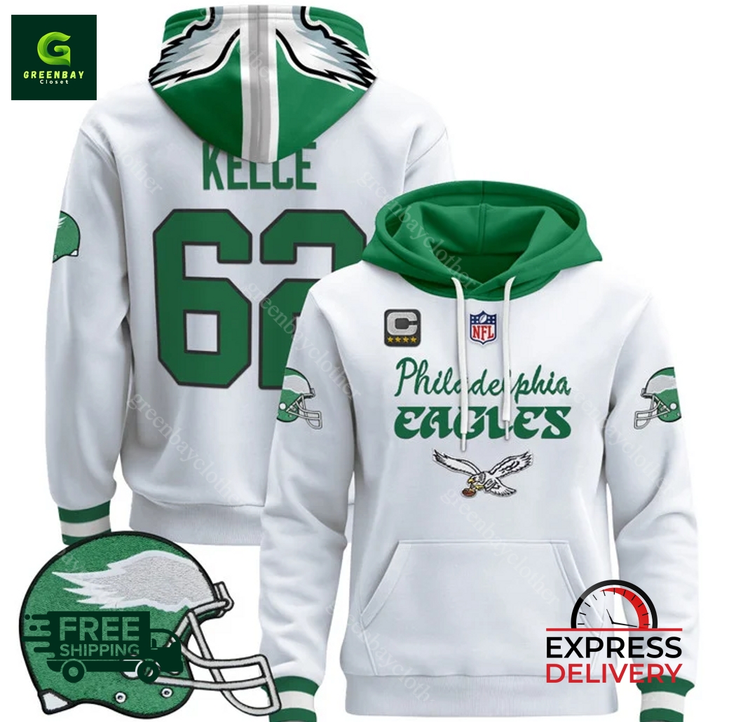 Philadelphia Eagles 2024 Jason Kelce Kelly White Hoodie product shipping: