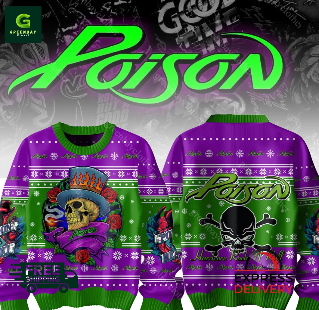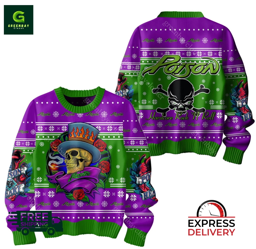 Poison Hardcore Rock And Roll Ugly Christmas Sweater product shipping: