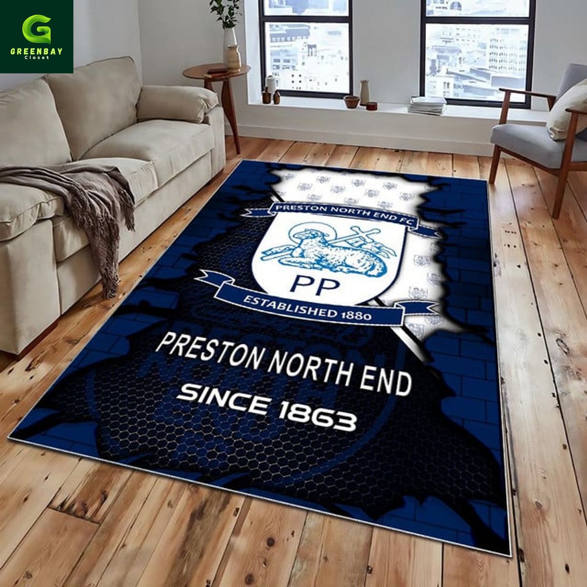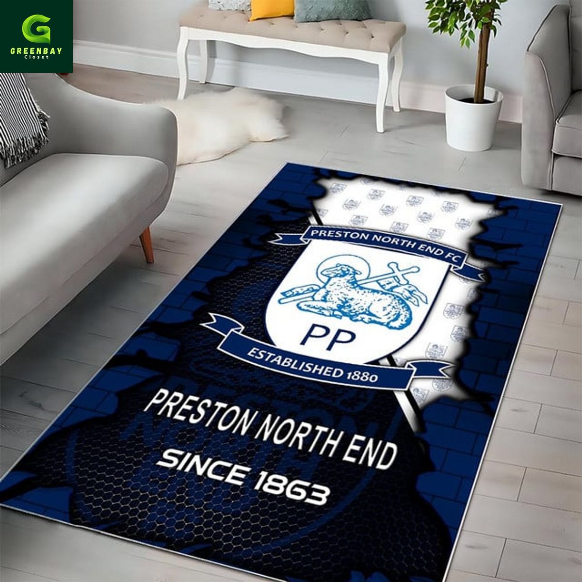 Preston North End Broken Brick Rug Carpet description