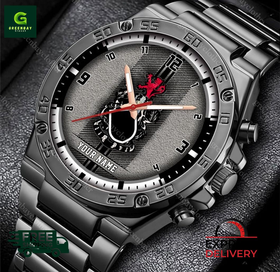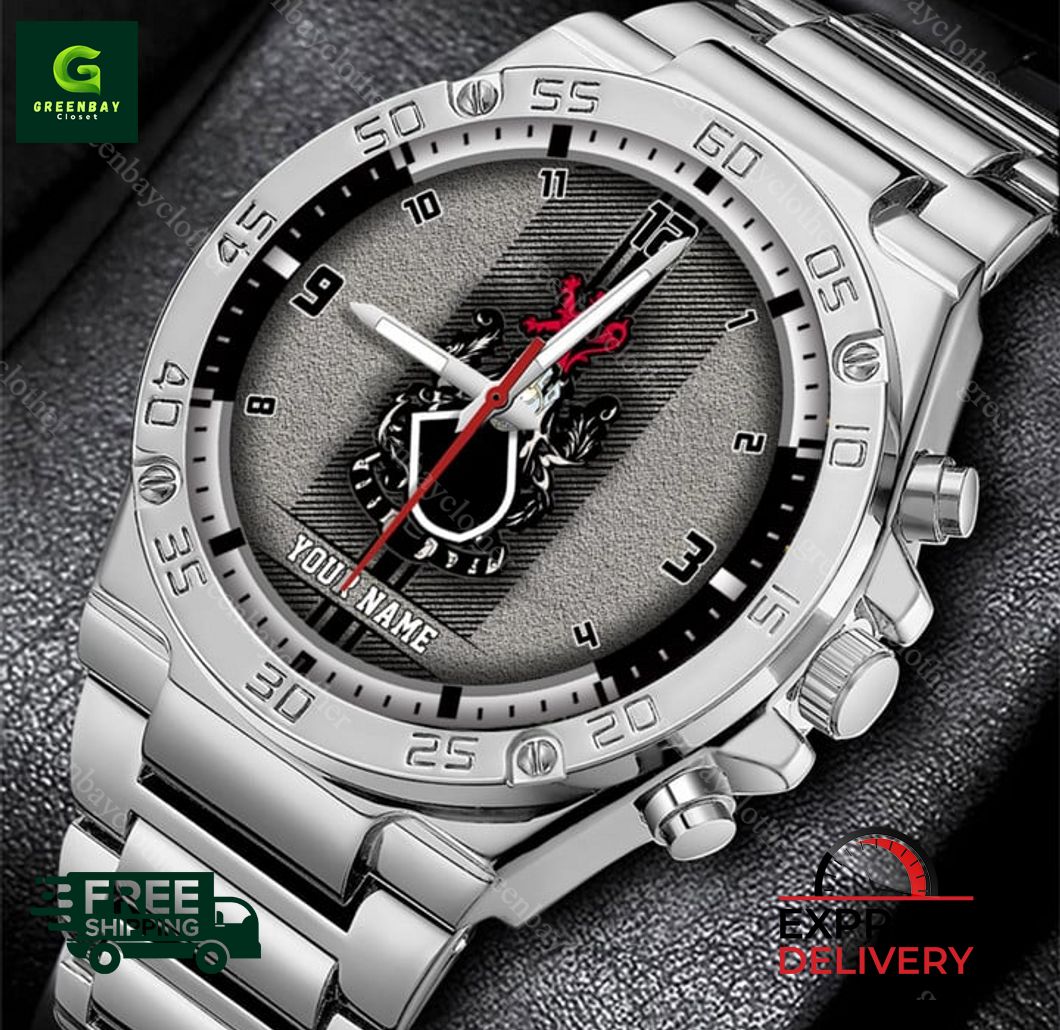 Introducing the iconic Queen’s Park F.C. SPFL Personalized Stainless Steel Watch, a tribute to the legendary Scottish football club. Crafted with meticulous precision in the heart of the USA, this timepiece is a testament to American craftsmanship and Scottish heritage. Its sleek stainless steel construction and durable band ensure longevity and effortless style. The watch face proudly displays the Queen’s Park F.C. crest, a symbol of unwavering support and passion for the club. Personalize it with your name or a special message, transforming it into a one-of-a-kind keepsake. With worldwide shipping, this exceptional watch can now grace the wrists of Queen’s Park F.C. fans everywhere, uniting them in their love for the beautiful game.