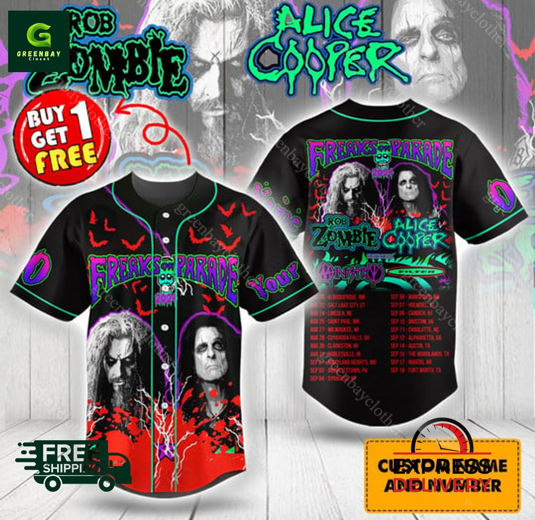 Key features Rob Zombie Alice Cooper Freaks On Parade Personalized Baseball Jersey: