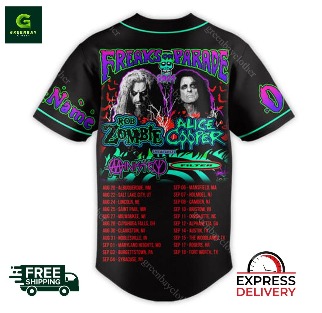 Rob Zombie Alice Cooper Freaks On Parade Personalized Baseball Jersey product shipping: