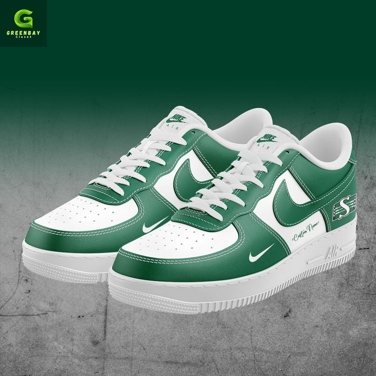 Saskatchewan Roughriders 2024 Custom Name Nike Air Force 1 Sneaker description