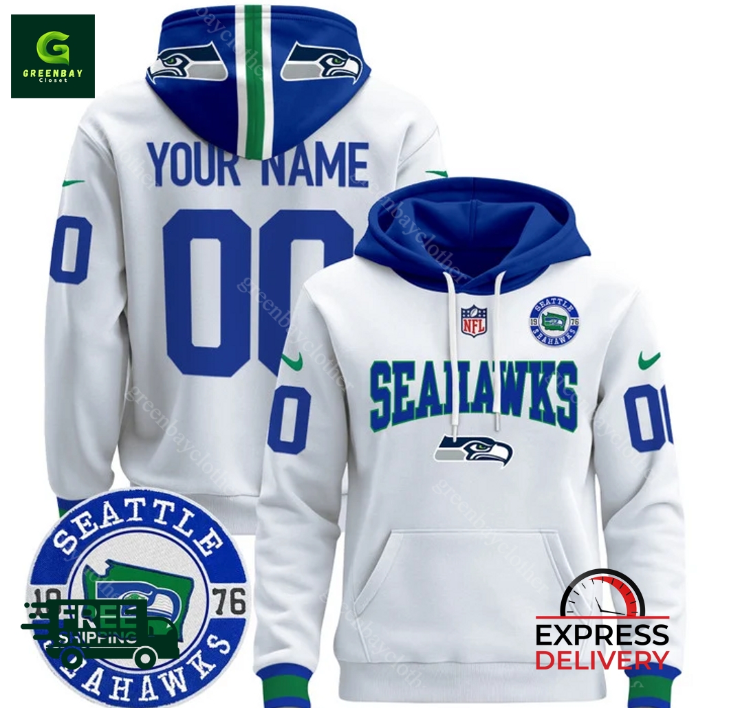 I am proud to present an all-time homage to the Seattle Seahawks: our Premium Throwback Est. 1976 White Pullover Hoodie! This deluxe hoodie is made using top quality materials to ensure warmth and comfort wouldn’t compromise on quality. The design is simple and timeless with the classic Seahawks logo dominating and representing the franchise’s strength. Our services are backed up in the United States; you can be sure that you will get a fantastic shopping experience at a reduced rate. Our Throwback Hoodie is the ultimate groupie, whether you’re a Sea hawks die-hard or just a fan of vintage sportswear. This is an incredible opportunity to own a piece of Seattle sports history while benefitting from the best quality and value available. Get yours now and let your Seahawks pride shine in your closet!