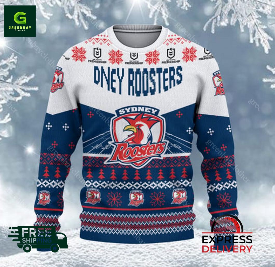 Introducing the Sydney Roosters NRL 2024 Ugly Christmas Sweater, the perfect way to show your team spirit this holiday season! This festive sweater features all your favorite Roosters players and logos, and is sure to get you noticed at any Christmas party. Made from high-quality materials, this sweater is both comfortable and durable, and is sure to last for years to come. Best of all, it’s available at a price that won’t break the bank! So don’t wait, order your Sydney Roosters NRL 2024 Ugly Christmas Sweater today!