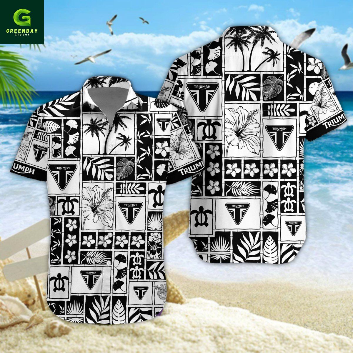 Calling all motorcycle enthusiasts and summer lovers! Embrace the laid-back vibes of the season with the Triumph Motorcycles Tropical Summer Hawaiian Shirt from Greenbayclother. This officially licensed shirt is a must-have for any fan of the iconic British motorcycle brand, combining bold tropical prints with the unmistakable Triumph Motorcycles logo.