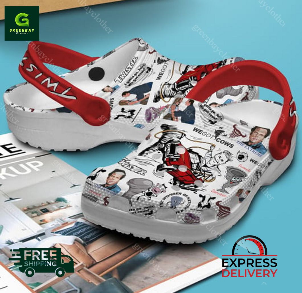 Buckle up for a twist on footwear with our latest Twisters We Got Cows Crocs Clogs Shoes! These Crocs are not just for kids anymore, they’re the ultimate statement piece for trendsetters of all ages. With their vibrant cow print and bold design, you’ll turn heads wherever you go. Our Crocs are made from top-notch materials to ensure both comfort and durability. Plus, the iconic Crocs holes guarantee breathability and keep your feet feeling fresh all day long. And to make it even sweeter, these Crocs are the cheapest in the market with the best quality you can find. Don’t miss out on the biggest discount when you buy multiple pairs – the more you get, the more you save! With our easy return policy, you can shop with confidence, knowing that you’ll love your new Crocs. Get ready to experience the fun and comfort of Twisters We Got Cows Crocs Clogs Shoes today!