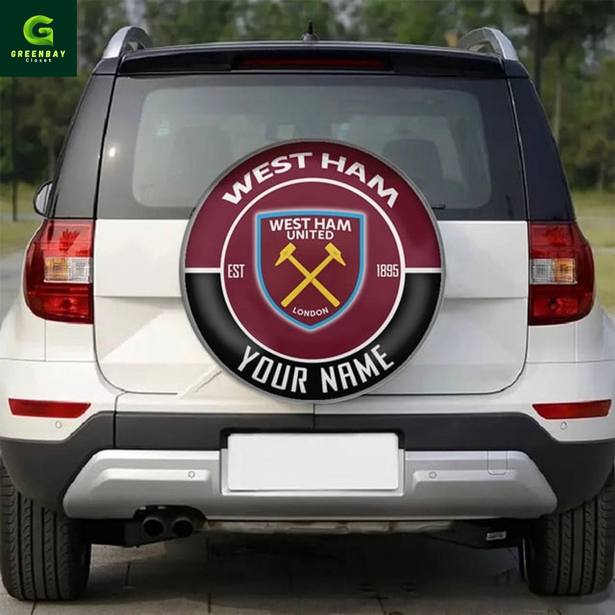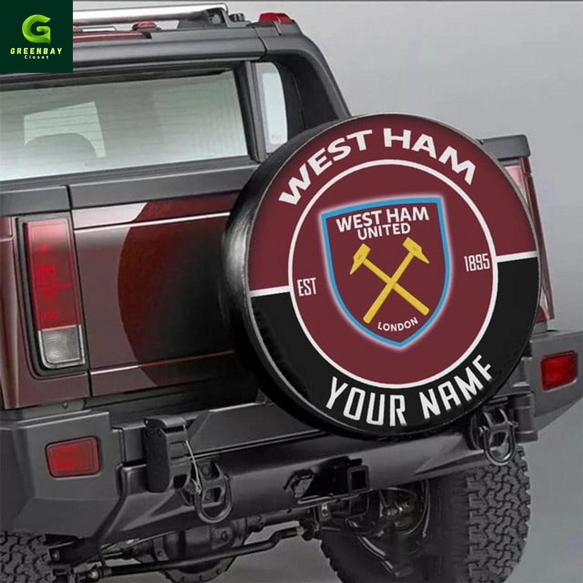 West Ham United Custom Name Spare Tire Cover PRODUCT INFORMATION: