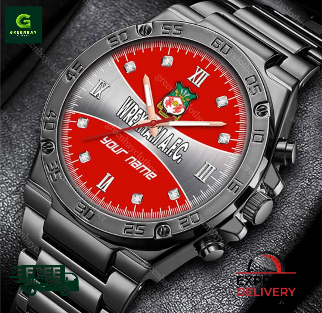 Step into the world of soccer royalty with our exquisite Wrexham AFC Personalized Stainless Steel Watch! Crafted from premium stainless steel, this watch boasts a sleek and durable design that will turn heads on and off the pitch. Personalize it with your name or favorite player’s name to create a truly unique keepsake. Its precise quartz movement ensures punctual timekeeping, while the scratch-resistant mineral glass protects the watch face from bumps and scratches. Experience the thrill of wearing a symbol of your unwavering support for Wrexham AFC. Whether you’re cheering them on in the stands or showcasing your team spirit in style, this watch is the perfect accessory to complement your soccer fandom. Order yours today and enjoy our unbeatable prices. The more you buy, the bigger the discount! Plus, our hassle-free return policy guarantees your satisfaction. Embrace the Wrexham spirit and proudly wear this personalized timepiece, a testament to your passion for the Red Dragons!